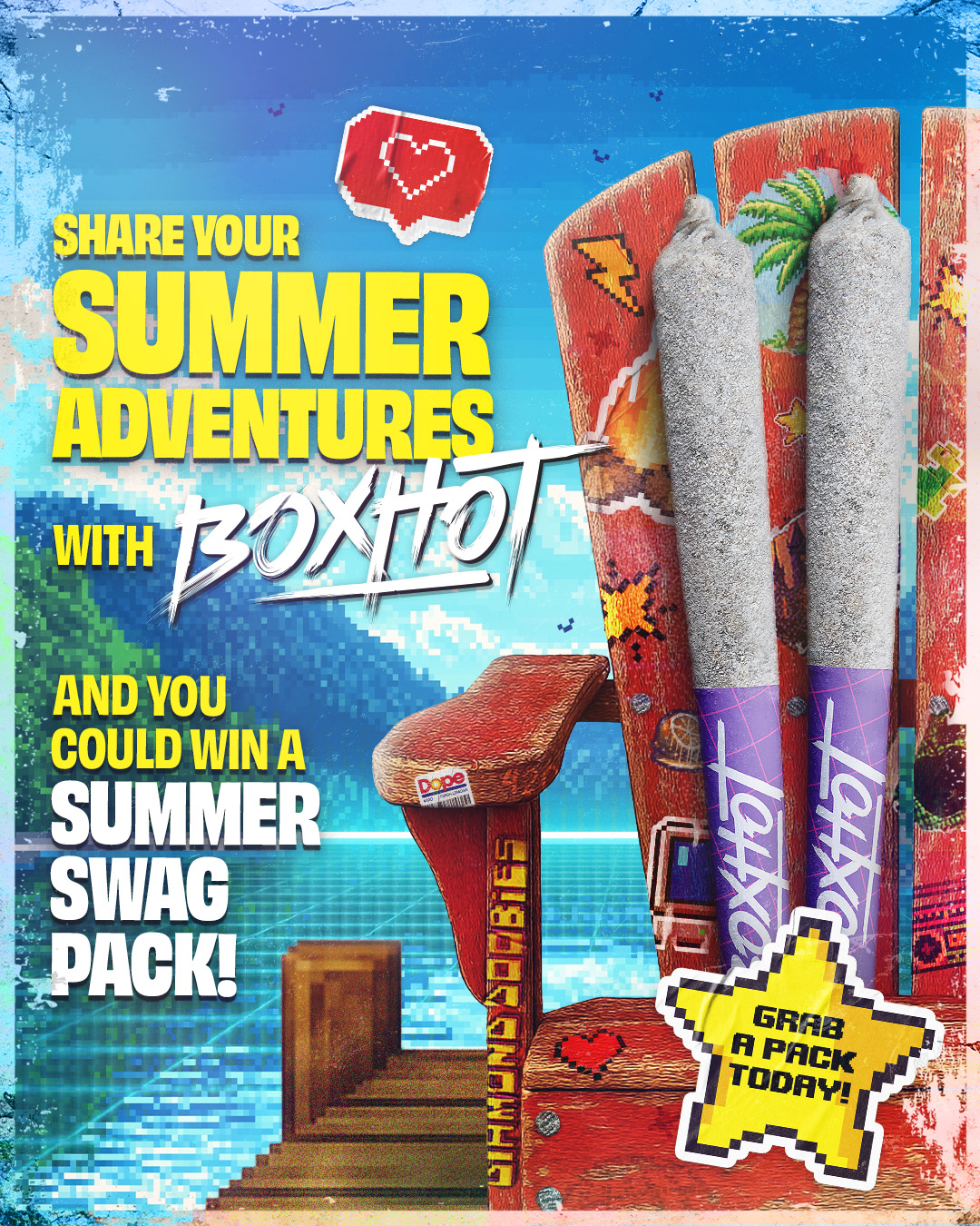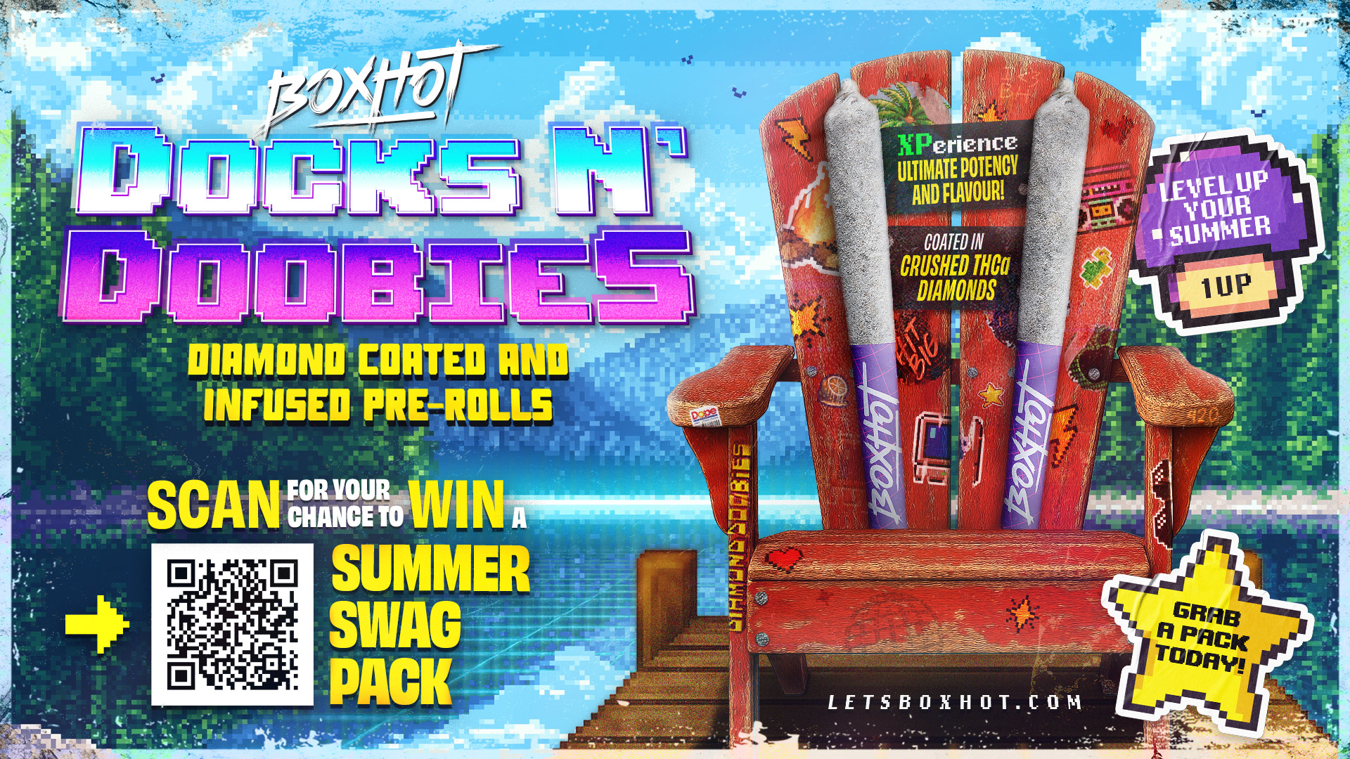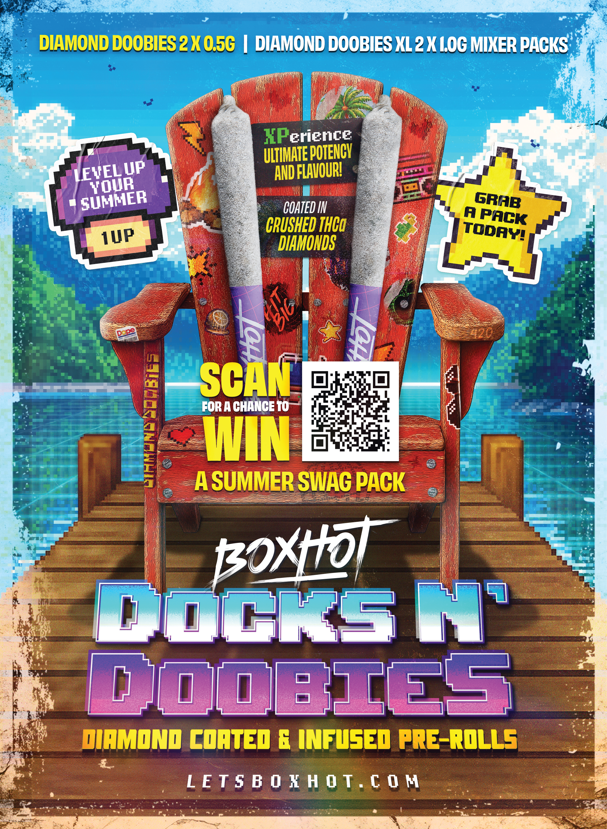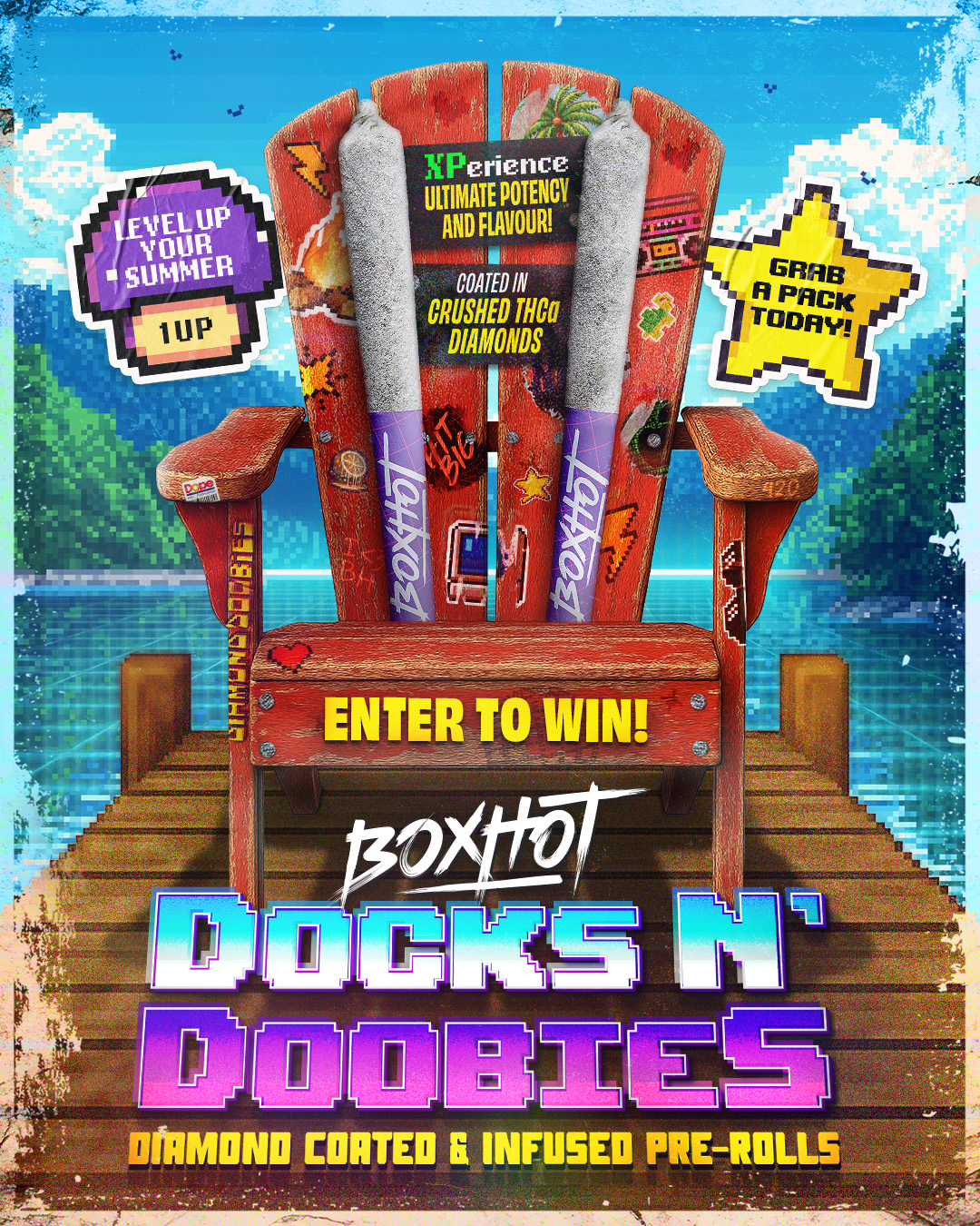 The Canadian dock became the stage for a summer campaign activation built around BoxHot’s Diamond Doobies infused pre-rolls. Rooted in cottage Muskoka culture, the campaign translated a familiar summer ritual into a cohesive retail and digital presence. By anchoring the product within a recognizable seasonal setting, the rollout strengthened shelf presence and cultural relevance during peak summer months. Diamond Doobies were positioned not just as an infused pre-roll, but as part of the dock day ritual itself.